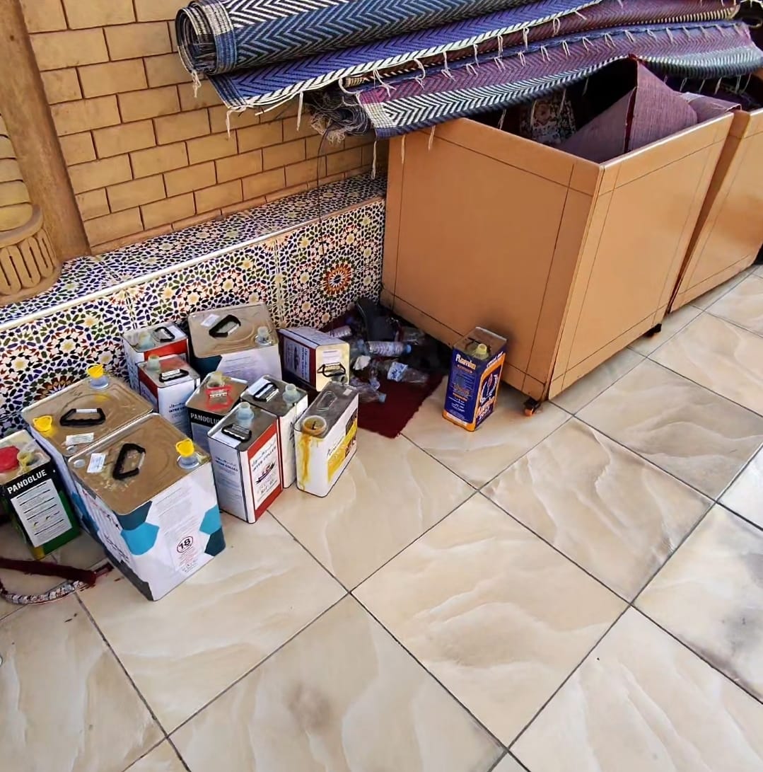 ولم يقف حد العبث عند هذا التشويه البصري، بل انتقل إلى "جريمة" تقنية مكتملة الأركان، حيث جرى تثبيت الفراش القديم فوق الزرابي الجديدة باستخدام "مواد لاصقة" (كولّا) بطريقة بدائية ومقززة، ما نتج عنه انبعاث روائح كيميائية كريهة أفسدت على الساجدين خشوعهم وحولت أجواء مسجد العرفان إلى "مختبر" منفر يطرد المصلين بدل جذبهم، وهو ما يطرح تساؤلاً ملغوماً وحارقاً: من أعطى الصلاحية لهذا الشخص ليتصرف في ملك عام تابع للدولة ويقوم بإتلاف ممتلكات كلفت ميزانية ضخمة عبر طلائها بمواد لاصقة ملوثة؟