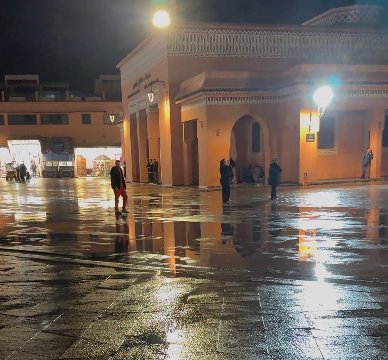 لم تحتج ساحة جامع الفنا سوى لزخات مطر خفيفة حتى تنقلب الصورة رأساً على عقب، وتتحول أرضية خضعت حديثاً لأشغال تهيئة مكلفة إلى مشاهد برك مائية واضحة، في قلب فضاء يُفترض أن يعكس صورة مدينة عالمية. لحظة قصيرة من التساقطات كانت كافية لطرح أسئلة ثقيلة حول ما أُنجز فعلاً على أرض الواقع.