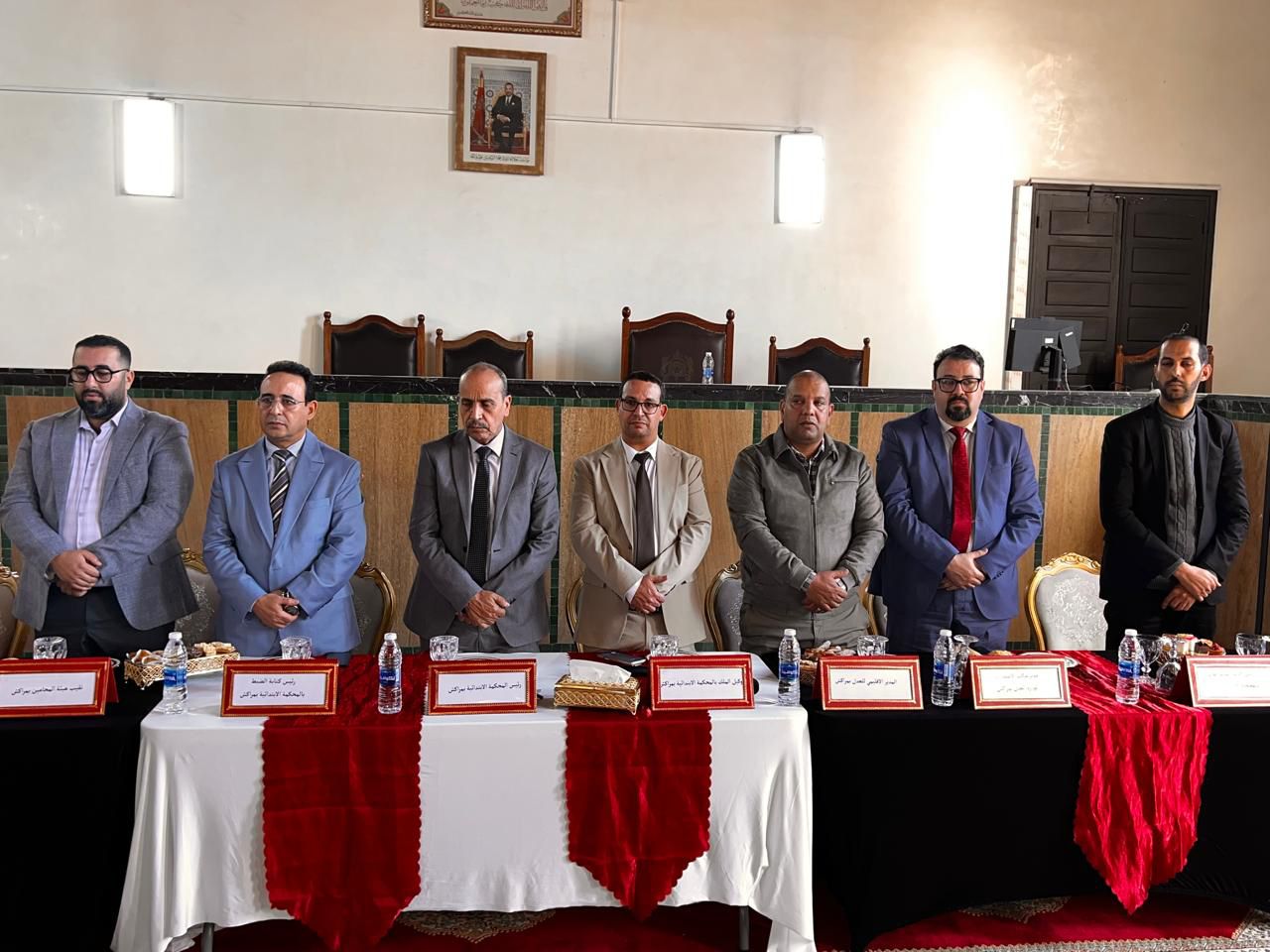 وقد عرف الحفل حضور شخصيات قضائية وإدارية وازنة، من بينها رئيس المحكمة الابتدائية بمراكش ووكيل الملك لديها، إلى جانب المدير الإقليمي لوزارة العدل، ونقيب هيئة المحامين بمراكش، فضلاً عن رؤساء كتابة الضبط والنيابة العامة، وممثلين عن الهيئات المهنية الشريكة في تنظيم هذه المبادرة، في دلالة واضحة على البعد الجماعي لقيم الاعتراف والوفاء داخل أسرة العدالة.